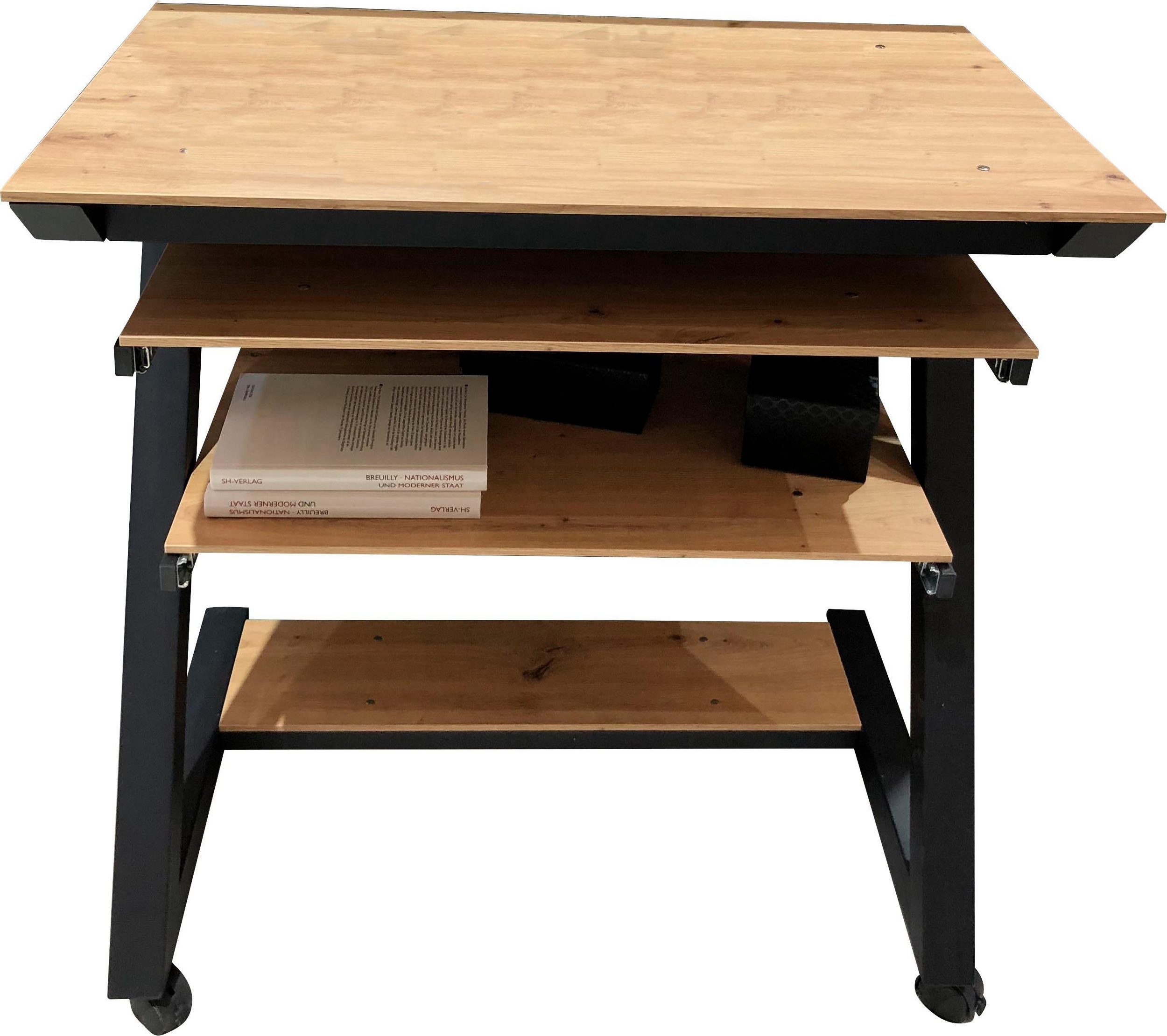 - Maximal-Größe: Noch entscheidender ist, dass er auch ausgezogen noch gut in den Raum passt, ohne Durchgänge zu versperren. Das funktioniert in der Regel besonders gut bei ausziehbaren Schreibtischen, die aus mehreren Ebenen in der Höhe bestehen.